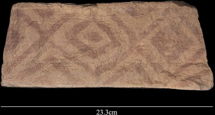 他們的搜索確實發現了動物骨頭的組合,包括野生動物和牛或野牛的骨頭 - 儘管尚不清楚後者是野生的還是馴化的。還發現了一塊帶有幾何圖案的岩石,如上圖所示。它位於其中一個須塔內的末端平台的表面上,任何站在裡面的人都可以看到它。