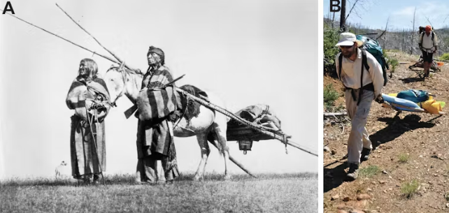 因此,它們代表了手推車或獨輪車的早期例子,但沒有輪子。輪式車輛的最早記錄可以追溯到公元前 2500 年的美索不達米亞(今伊拉克)。我們認為,特拉沃斯可能是在需要時用帳篷桿、木柴和長矛臨時製作的。