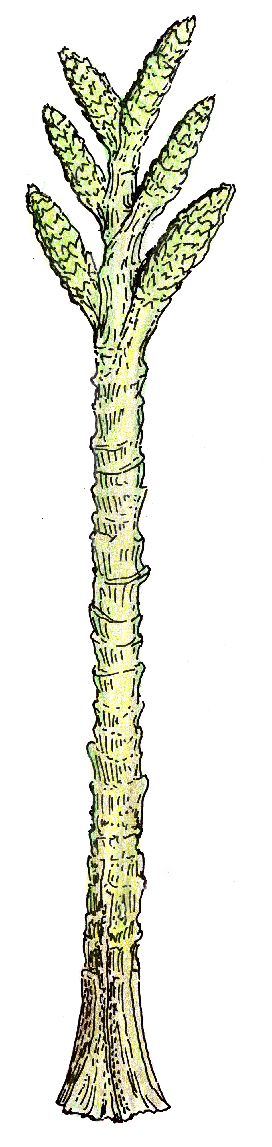 一位藝術家對 P. loganii 的重建,它是一種原杉類植物,它長得非常高,特別是按照當時的標準。