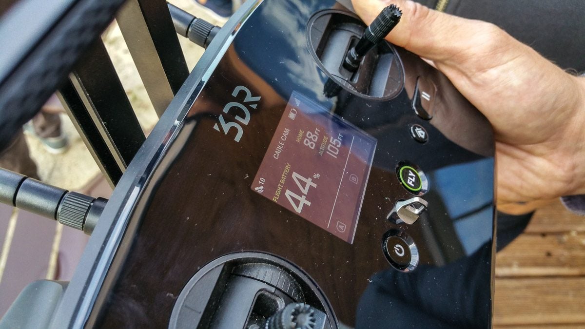 遙控器還包括其處理器,用於處理髮送的命令。很明顯,結果是令人信服的。顯然,我們沒有將無人機發送到其宣布的最大距離,但在近 150 米的距離上,雖然我們幾乎看不到它了,但我們仍然通過智能手機或平板電腦(兼容 iOS 和 Android)的屏幕進行導航,並具有令人放心的響應能力。因此,3DR Solo 真正給任何用戶帶來信心,但前提是他們在開放空間中度過了飛行的頭幾個小時。