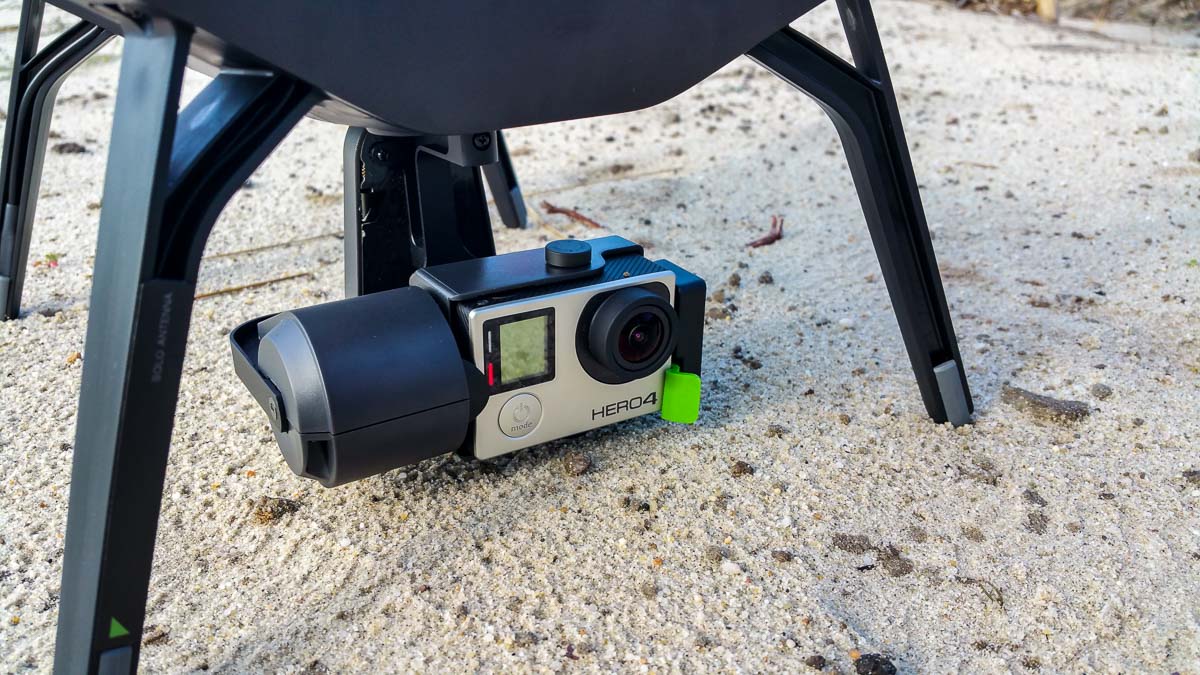 也許除了籃子。專門為 GoPro Hero 3+ 和 Hero 4(所有版本)設計的支架位於無人機機身下方,實際上是 Solo 唯一潛在的薄弱環節,因為在肌肉著陸時,腳對我們來說似乎有點短。