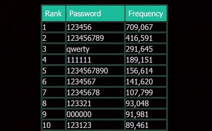 這批新被盜數據尤其令人驚訝的是,密碼完全是明文的。無論如何,網站就是這麼說的。LeakedSource.com,他能夠檢索該數據庫的副本並對其進行分析。這意味著VKontakte沒有使用任何加密技術來存儲其用戶的密碼,這是特別疏忽的。就 LinkedIn 和 MySpace 而言,密碼至少被“散列”過,即使是無效的。與之前的案例一樣,LeakedSource 列出了最常用的密碼。不出所料,我們在 Top10 中發現了傳統的“123456”、“123456789”或“qwerty”。因此,俄羅斯用戶的想像力並不比其他人多。