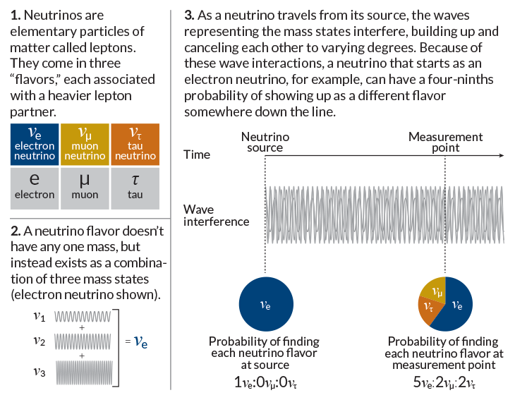 自从物理学家沃尔夫冈·泡利在1930年提出中微子的存在以来,中微子就一直具有神秘的吸引力。中微子自宇宙诞生以来就一直存在,并且在恒星和核反应堆的核心中不断产生。但它们很少与其他物质相互作用。 20 世纪,物理学家得出结论,中微子没有质量,并以三种“味道”出现,这三种“味道”以中微子与物质相互作用时产生的粒子命名:电子、μ子和τ子。
