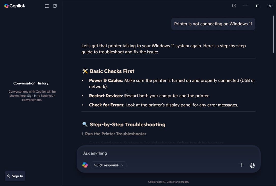 现在输入您的问题,让 Copilot 帮助您找到相关答案。您可以继续提问以获得 Windows 11 问题的解决方案