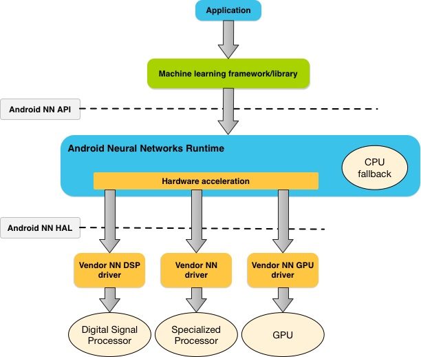 目标是让应用程序能够利用信号处理器、图形处理单元 (GPU) 或图像处理电路等专用电路,就像 Pixel 2 上的那样。因此,Pixel Visual Core 的功能可以被 Google 以外的其他应用程序利用。如果智能手机中不存在专用芯片,则优化的代码将在设备的处理器上执行。